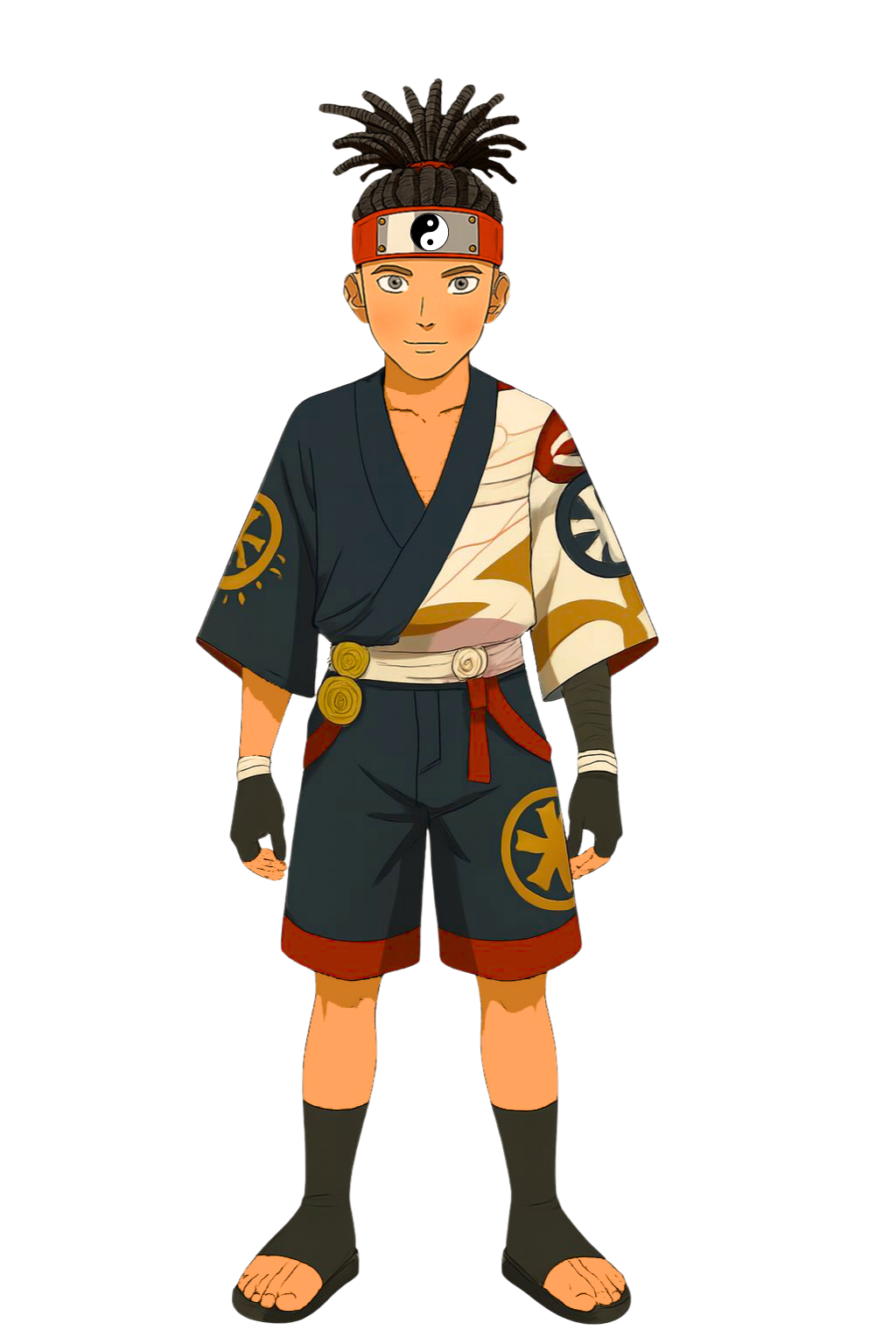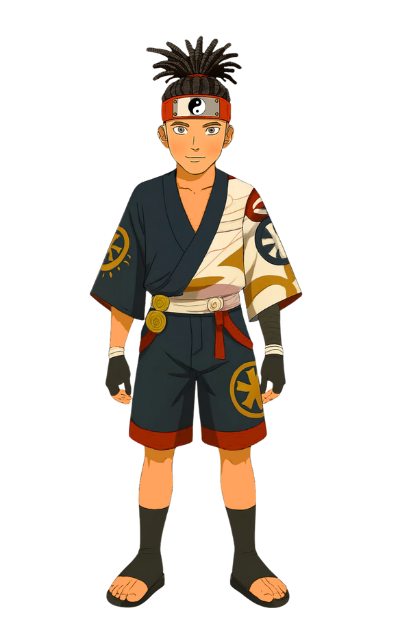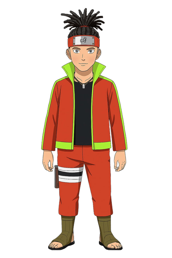 In this alternate timeline, Naruto Uzumaki sports a modernized ninja outfit with bold red and lime green accents, symbolizing his vibrant spirit and unbreakable will. With his signature Leaf Village headband and confident posture, Naruto continues to embody the values of perseverance and compassion. His new look reflects a blend of tradition and evolution, standing as the beacon of peace and strength in the shinobi world.
